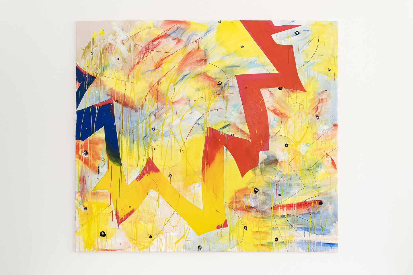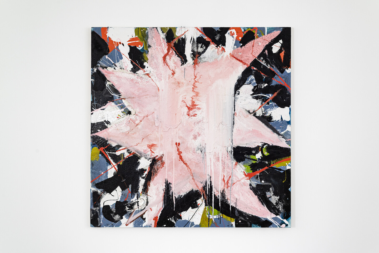 oil and household gloss paint on canvas, 150 × 150 cm