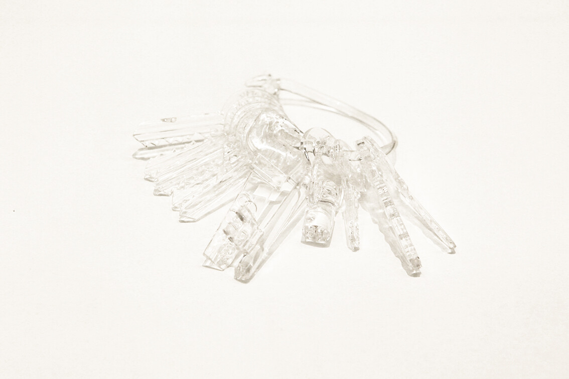 glass bunch of keys, scale 1:1, 15 × 12 × 2 cm, Ed. 8 + 2 AP