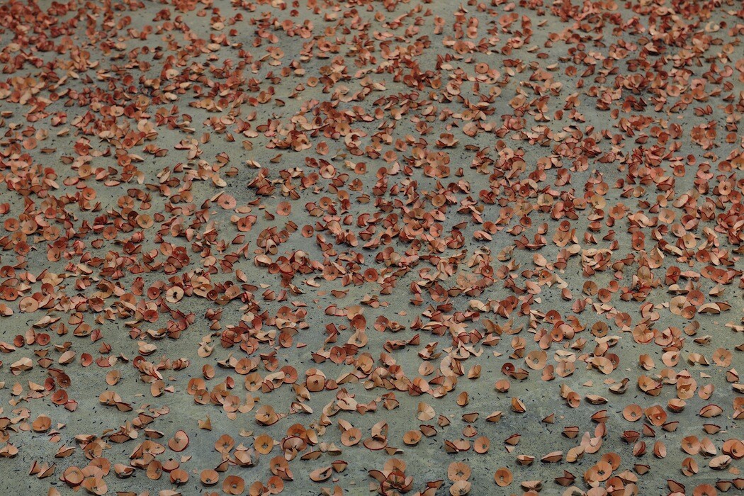 performance/installation, colour photograph, inkjet print on poster paper (100 × 150 cm), pencil shavings, dimesnions variable