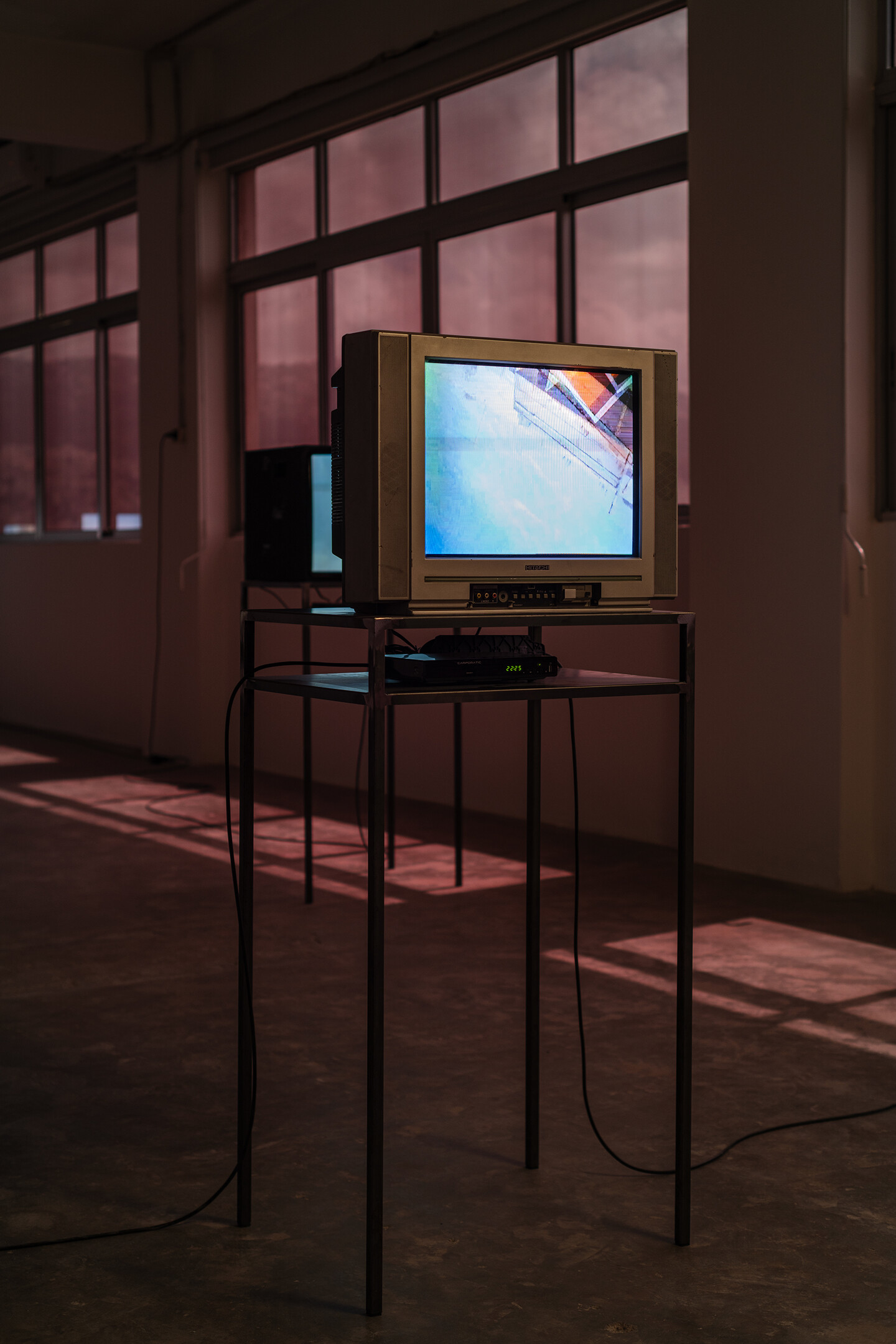 Abu Hamdan statement that ‘Power resides with those who define what constitutes noise’ is as fundamental to his exploration of the urban noise-scape of Cairo in the post 2013 military coup as it is to his most recent work in the Syrian Golan Heights occupied territories – recently witnessing political unrest brought about by the planned installation of wind turbines in proximity to people’s homes. Raising awareness about the effect of such noise, Abu Hamdan has also developed a video game with fellow researchers at Earshot* based on the sound recordings of similar turbines in Gaildorf, Germany and recordings of ambient noise captured in the Golan Heights. The installation mimics the nowadays popular style of streamers, showing a recording of the game commented by the artist.