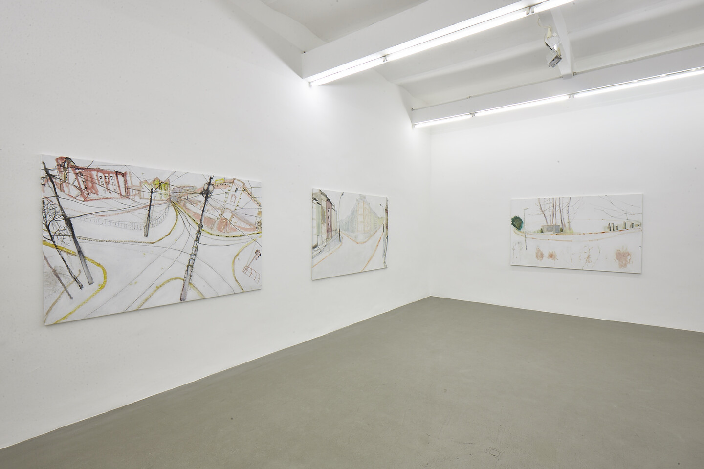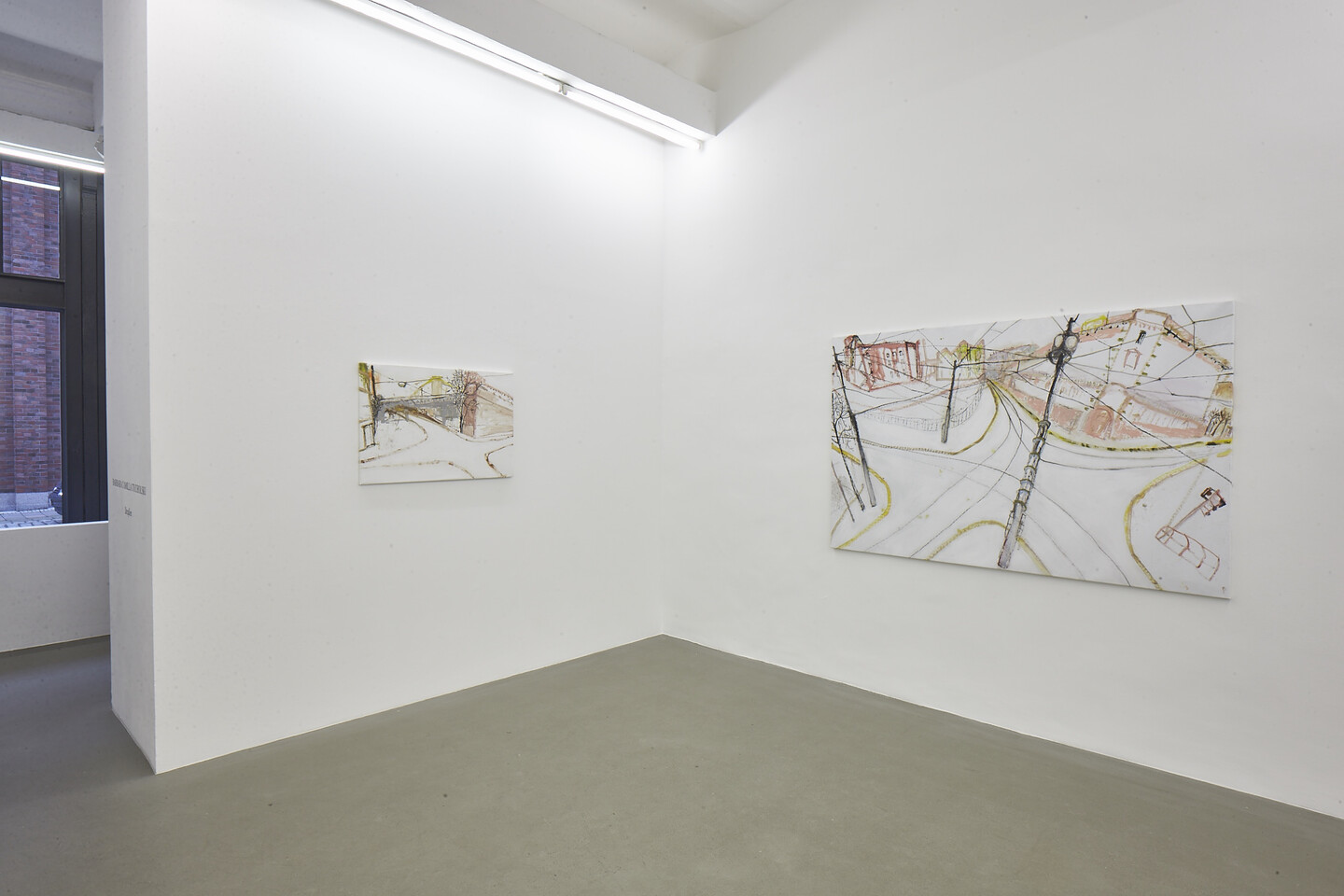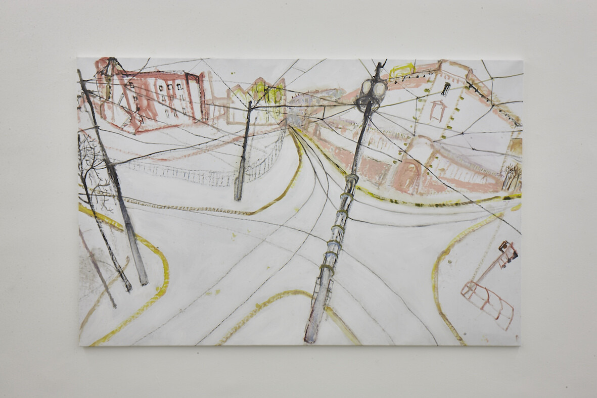 Her drawings alternate between the partly edgy, partly smooth, precise lines, forming delicate networks and curves. With only a few strokes the observed comes to life through pencil on paper, with pointed precision that reveals its essence. Tucholski’s drawings are the embodiment of her ways of seeing and perceiving; they are the outcome of her bearing witness to the complex thematic links between space, homeland and identity. The artist develops in her drawings a unique way of seeing, leaving the established central perspective behind in favour of a multi-layered connection between sites and vanishing points. The exhibited drawings in Streets show a direct and intimate personal bond with space and time as a counterpoint to the detached and impersonal virtual reality of the digital age.