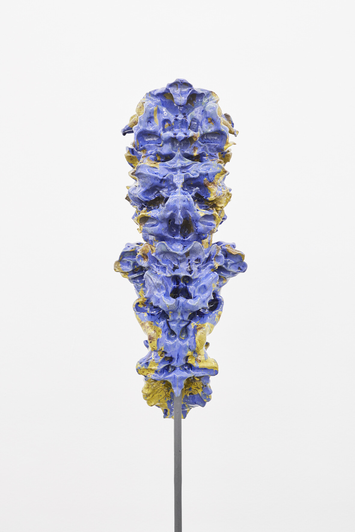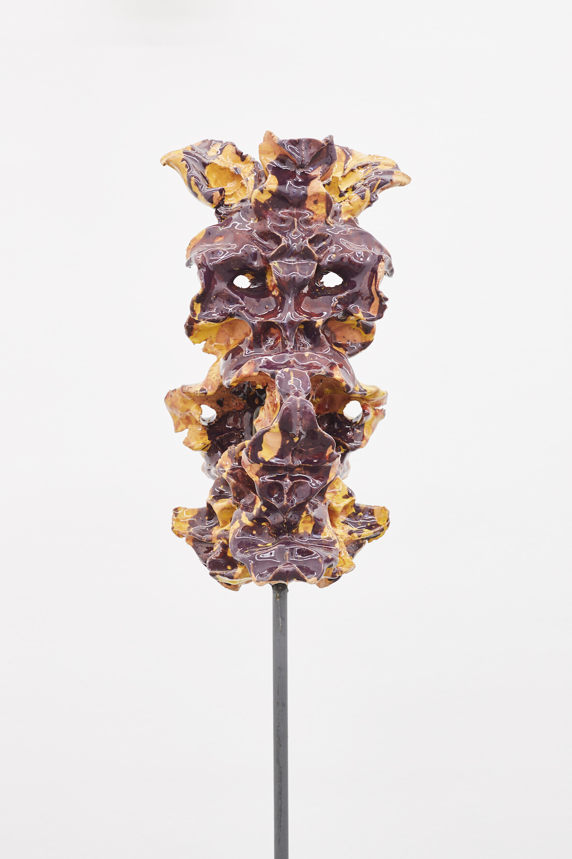 With the approach to form the fiction, Moritz Altmann works with plasticine, intuitively and with both hands at the same time. The symmetrical modeling defines the finished objects and makes them associative: from organic structures to masks and faces, much is recognizable in the many-color ceramics.