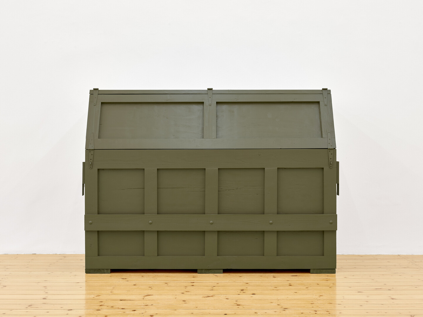 Kiswanson engages with this charged legacy through the careful restoration of one such unique piano. Removed from its original utilitarian function, it is installed in the gallery, detached from its protective casing. The instrument levitates above a child-size white cocoon, in a sculptural gesture that reimagines the wartime relic as a symbol of the historical rupture it embodies, echoing music’s transcendent and recreational potential.