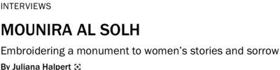 Mounira Al Solh, Embroidering a monument to women’s stories and sorrow by Juliana Halpert | via Artforum,