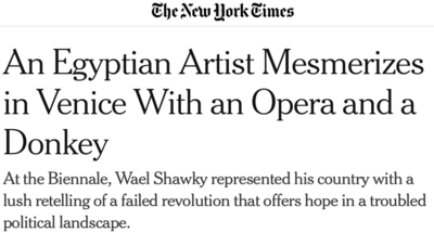 Wael Shawky, An Egyptian Artist Mesmerizes in Venice With an Opera and a Donkey by Aruna D’Souza,